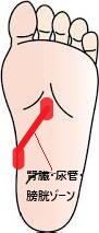 尿の出をよくする腎臓・尿管・膀胱のゾーンを刺激します